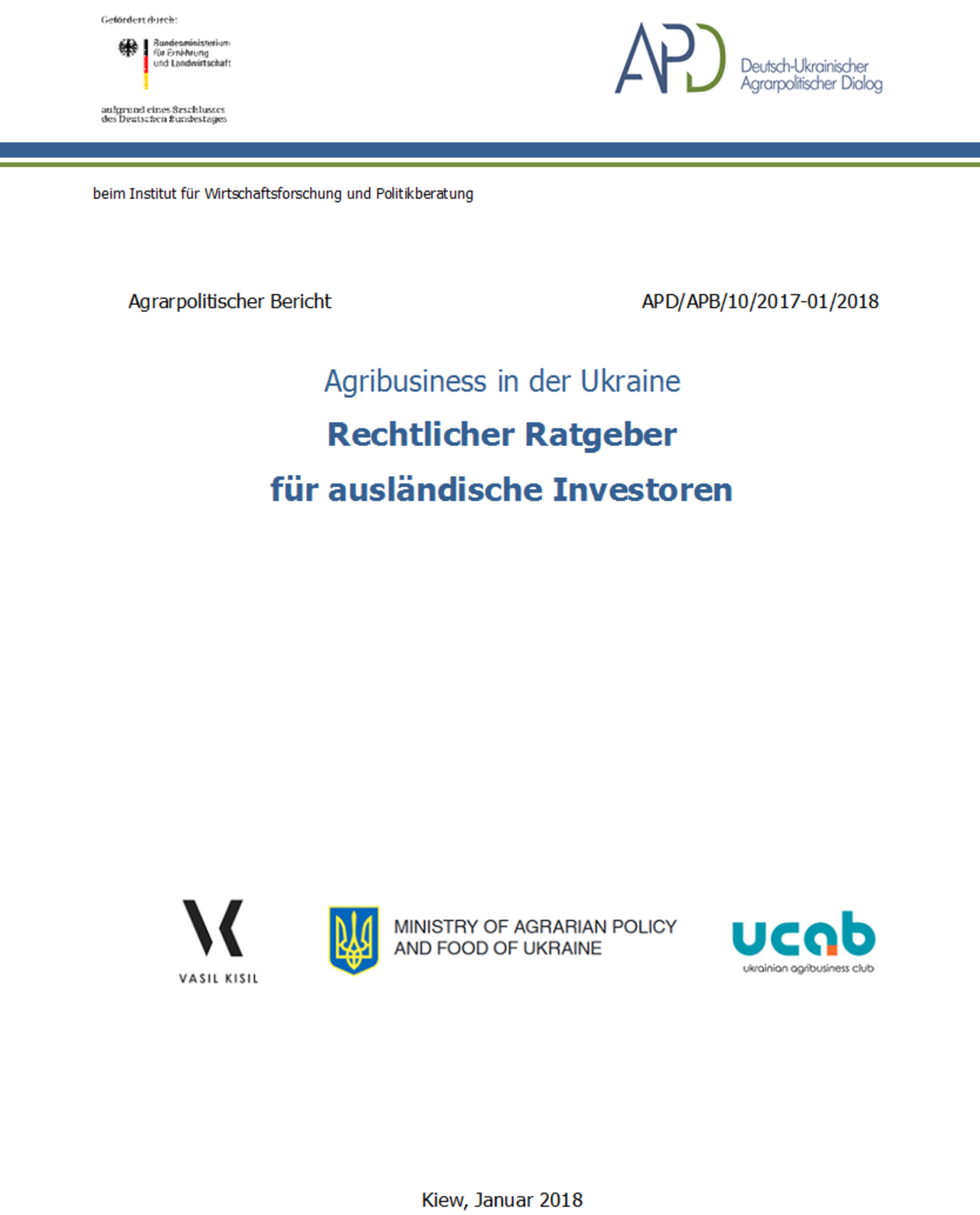 Broschüre "Agribusiness in der Ukraine. Rechtlicher Ratgeber für ausländische Investoren", 2018